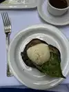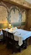 The restaurant is tucked into part of the ground floor of an old apartment building in Seattle's Belltown neighborhood. Odd location, but apparently has been there for years. I always have to check menus beforehand as I don't eat meat any more. I saw something (roasted eggplant) I could try and it was delicious as was the cream of spinach soup. The room we were seated in (there appear to be more than one) was quite cozy and atmospheric, and again, very old, but that just added to the charm. From the picture on the website it appears there is outdoor dining....next to the fountain....in the warm season.