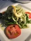 We had a leisurely dinner in the courtyard on a hot day as the evening cooled. We could have been in Italy. Excellent bread. My wife and I each had two appetizers and were very happy with all four dishes. The star for me was a calamari with pesto. Baby calamari cooked to tenderness and tossed in a light pesto and served over a bed of greens. It all melted in the mouth. Our friend and host had veal scallopini that looked delicate and tender--he loved it--he goes there often and that is his favorite. Lemon gelato served in a scooped out lemon for dessert was excellent--if you have it, the lemon skin is very edible snd makes the dish more interesting if you eat some of it along with the gelato--and it is enough for two.