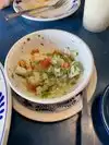Strong margaritas, great patio if it had not been cold and windy! Chips were ok, salsa was good, I enjoyed chicken n bacon n cheese tacos no tortilla with lettuce being healthy. Friends had the cup of elotes for the 1st time with a shrimp dish and loved the two mixed together, a new menu item? Other friend had a bean tostada and avocado tostada and cleaned her plate.