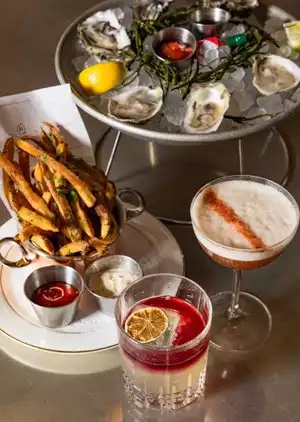 Lovely lunch experience with dishes that mostly match the opulent surroundings. Favorites include the Wagyu carpaccio, namesake burger, famous fries and cream Mac. Scallops were perfectly cooked. Creamed Spinach was pretty standard and borderline watery so not a repeat order. Matcha Yuzu tart was a delightful blend of bitter, sweet and creamy flavors. Loved the PJ Breeze, a bright & refreshing mocktail of sweet, sour & minty notes. Our lunch server was a welcoming and attentive gentleman. Never would have guessed he had only started a month ago! We will be back to try the fromage board, croque madame and more!