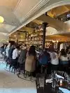 This restaurant is gigantic, and that may be part of the problem. Cocktails are pretty good and there is a very large bar in the center of the first floor that makes it suitable for a drink or more and a snack. Noise levels make conversation difficult. The second floor is a little bit quieter but since it opens to view the downstairs bar it is still noisy. Food offerings are inconsistent. An excellent vichyssoise starter was accompanied by a just ok beef burgundy entree. The profiteroles were maybe the poorest quality pastry I have ever tasted. The bus staff was very efficient in bringing water and bread and clearing plates but the upstairs needed at least twice as many wait staff as were present and service was very slow. We didn't bother to order a second drink as it took ages to receive our first. The restaurant should stock at least wines by the glass on the second floor to speed things up. Really reminded me of the Orlando Disney World French restaurant.