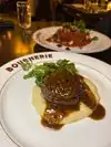Came here with friends on a busy Saturday night. We had a wonderful table upstairs and a great server Cammie. Food was top tier. We had 2 filets( au poivre and bechemel) both were cooked to a perfect medium. We had two bottles of wine. They had 50% off bottles of wine. For our sides, we had the hericot vert, macaroni and cheese all awesome! Also escargot and steak tartare as apps! Highly recommend! Canât wait to return!