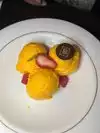 We celebrated our 20th wedding anniversary here in July. It was a great experience. Our server, Andres, offered us complimentary glasses of champagne after we were seated outside on this summer evening. We enjoyed a delicious fromage board for an appetizer. It had a Brie, a very well balanced bleu cheese, a Fromage dâaffinois, and a fourth semi soft cheese we couldnât identify, along with some candied dried fruits and some spiced walnuts and toasts. Perfectly sized for two. I had a delicious Filet Mignon au poivre done medium rare and my wife had crab spaghetti that is relatively new to the menu but highly recommended by the server as being noticed by many food critics. Both plates were delicious and well-portioned. I really liked the peppercorn sauce and how well it complimented the steak and the mashed potatoes. The highlight of the night was the Mousse. The description said that it was recommended for 2-3 people, and I would agree that it serves 2 at minimum! It was, in a word, AMAZING! Delectable! Smooth! Rich! To Die For! Worth every penny. The hot chocolate sauce to pour over and melt the white chocolate disc was incredible, and the raspberry sauce was just perfect on top. We couldnât finish all of it, but we so wanted to. It was such a perfect end to the night! I would recommend this restaurant for anyone celebrating, and I would recommend stopping for mousse and espresso after a dinner out a date. I will be back.