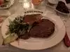 I came here with my partner to celebrate his birthday and we had a lovely time. My partner had a 14 oz dry aged rib eye and was blown away by the quality and taste. He finished it off with a creme brulé, one of his favourites. He said the food was some of the best he's ever had. I am a vegetarian and it's amazing to see that we are catered for too and I had a superb mushroom ravioli. Thank you for a lovely evening