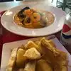 Large portions very delicious seafood soup with lots of seafood! Yummy and tasty. Monica was very friendly and helpful server
