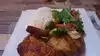 Two beers and a plate with fried rice with chicken pieces. Very tasty with the garlic sauce; you are full and can leave. Relax and enjoy