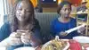 Walk into the restaurant and place your order and pay, you'll be given an empty cup matching the drink you ordered and a black buzzer, then you can sit yourself anywhere and wait for your buzzer to go off, walk back to the counter to pick your food. No servers waiting on you at the tables. For lunch for our party of three, we initially ordered one plate of seafood fried rice and fried bananas also known as plantains, because my sister said their portions were really large and that she and two others usually share a plate. By the time we dug in, we had to order more possibly because we had a bigger appetite or we were pretty hungry or both. They actually serve large portions.