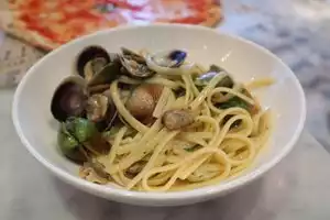 Having had our first course at Il Pesce, we headed over here for some pasta and pizza. We were seated fairly quickly and the service was swift and friendly. From the fresh pastas we chose the pork rib ragu which was very tasty with small chunks of melt in the mouth pork, and perfectly cooked fresh tagliatelle. From the dried pasta choices, Vesuvio, which was a lamb based pasta with a bit of kick - again, very delicious. We also had the Marinara pizza which tasted good, albeit fairly soggy and limp with quite a bit of dried oregano. So - definitely go for the pasta. For 3 pasta, one pizza and two glasses of wine, total including tip $140, so not inexpensive but it was satisfying and tasty.