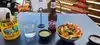 This was a great find in the gas lamp district and only 5 minutes away from our hotel. We waited only 20 minutes and ordered. We had the guacamole and chips, small chopped salad and the surf and turf tacos. Everything came within 10 minutes of ordering! The guac was amazing and a huge serving in a bowl. It came with two salads, both were mild in heat. The salad came with a spicy kick of a dressing, but it was delicious. My tacos were a huge serving of three street tacos with steak, shrimp and vegetables. The rice, beans and vegetable sides were perfect too! Our server was amazing too!