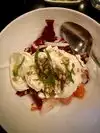 We were able to get a reservation on short notice. Otherwise, this place did not live up to the hype. The escarole salad was charred, not my favorite way to have a salad. If it had been noted on the menu or the server had mentioned this, I would have requested thay they skip the char as it just leads to wilted, disgusting lettuce. There were no GF pasta options, not even risotto! I don't eat meat but occasionally have fish. With only one menu option, and it was market price so changes regularly, it was not worth trying. Our server took multiple requests to bring straws for our drinks and butter for the bread, despite the place not being busy yet- per her opinion, because as we were leaving she noted we were getting out before it got crazy. I found this to be overpriced with a very limited menu.