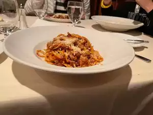The service was friendly and very efficient. They were able to get our party of 13 seated for a 9:30 PM reservation on a Saturday. Great job! The garlic cream sauce over tortellini is a must try - served hot with fresh pasta. Just delicious. The minestrone soup, bolognese lasagna, fruitti di Mare, profiteroles, and tiramisu were favorites at our table. This restaurant has been here since 1974 and they have a unique collection of photographs and some autographs of famous opera performers gracing their walls.
