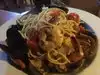 I loved the atmosphere of the place. My husband and I both enjoyed our pasta with seafood dishes. I had the seafood with freshly made spaghetti. The seafood in both our dishes was very fresh and not at all overcooked. I didn't know until that night that pasta itself could be fragrant! It smelled and tasted like freshly baked til golden homemade bread. I ate every bite and used the bread at the table, also good, to sop up every last drop, which also picked up the toasted pasta flavor. Service is good, and you can eat outdoors there. We opted not to because traffic was rather loud that day. They also have gluten-free pasta, but just one type, I think rigatoni.