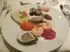 The choice was the set dinner menu. The single oyster amuse bouche was excellent. The first course we chose one from the two choices, we had the beetroot, tuna and watermelon. We were informed there was a substitution of Bronzini. A delicious start to the dinner.The entree choice of duck or beef seemed a little too limiting, we chose the duck which was a little tough though cooked well. A dessert of lemon soufflé was cakey and rather too much and certainly not as light as my soufflés. The restaurant looks over the grass square and is attractive, the service was excellent and one waiter quite knowledgeable about his wine. There were few diners so the restaurant was pleasantly quiet but sadly their prom guests in a nearby room were making far too much noise.