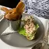 Had a great lunch here with a former business colleague. We both had the very tasty Cobb salad. I had it as on the menu with chicken, she substituted salmon for the chicken. Great location for a quiet lunch in Center City with great service.