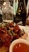 My husband and I visited Ladybird with his son and partner during our stay in NYC. We each ordered two tapas items and couldn't finish all the food. Everything was delicious and beautifully presented! We ordered: Truffle Mac and Cheese - delicious but not my favorite Potato Au Gratin - creamy and flavorful, a table favorite Brussels Sprouts - roasted and well-seasoned Grilled Cheese - probably my absolute favorite dish of all KFB - tempura broccoli that had a little heat and tons of flavor Eggplant - two large slices of breaded eggplant with a wonderful ricotta topping The venue is quirky, cozy, and lit with pink lamps (which is why I have no pictures of the food). Our server was prompt and friendly and skillfully answered all our questions. They have outdoor seating although we opted to sit indoors. I highly recommend Lady Bird!