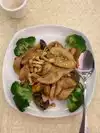 We enjoyed our dinner at this restaurant. My husband and I are vegetarians while our son is a true carnivore. We started with the mushroom egg rolls, which I thought was the star of the dinner. Our son ordered the beef chow fun and really liked it, though he did comment it was slightly salty. My husband ordered The braised tofu with mushrooms. It had a very light sauce, not heavy or salty. I ordered a dish I can’t remember the name of at the servers suggestion. It was multiple mushroom varieties with an egg tofu (creamy and fried, cut into medallions) in a light sauce. It was different from any other dish I have had and very tasty. The staff was very nice! They chased us down when my husband forgot his phone.