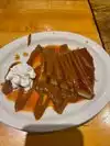 I'm an American who has spent several years living in Buenos Aires and was very excited to stumble upon Lala's while in Los Angeles. Me and a couple Porteños (native Buenos Aires residents) ate at Lala's in July, 2012, and ordered the large meat platter to share. We also ordered milanesas and various side dishes. The meat was great but it wasn't prepared like I had eaten hundreds of times in Argentina. The chimicurri was amazing. The milanesa was spot on--large and delicious. The dessert was the best part. A crepe-like pancake filled with cream, bananas, dulce de leche, and topped with burned sugar. So tasty! My buddy ordered the flan and said it was excellent as well. I will definitely go back next time I'm in LA. My only complaint was that the waitress didn't refill our soft drinks unless we flagged her down and asked for refills.