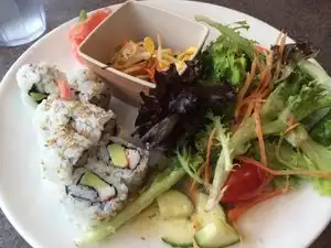 i regularly get takeaway when staying in the adjacent hampton 3 times asked for plastic cutlery, get back to hotel - soup and no spoons... 2nd time this has happened secondly the sushi for one was very disappointing, the fish was so tough and chewy i couldnt eat it. bearing in mind its 20bucks, one expects better. finally the service was slow, paying and they run off for 10mins to get change becomes very tiresome hope it picks up as it remains convenient
