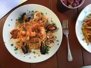 We ate in the upstairs section of this restaurant which was quite busy for dinner. I enjoyed the spaghetti bolognese with its large, home made meat balls. My daughter loved the way her pizza was made so she returned the following night for takeaway. The restaurant was quite expensive when compared with others we dined at during our trip.