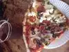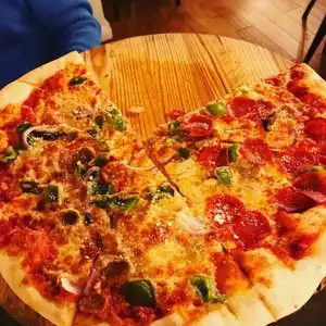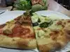 The pizza was very doughy in the mid crust, and not acceptable to us..could have cooked a bit more..Tastes were good, and the atmosphere was good.