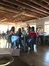 We stopped in for a sit down meal. We got a Chanati wine, 18" peperoni and onion pizza, and Italian salads. Allwere great. Only downfall, we had to walk up a narrow steep stairway. There was plenty of Italian communication.