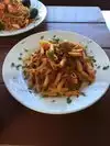 poor quality food served in foil dishes and paper plates. My partner sent her awful pasta dish back and was given 2 slices of tasteless pizza in return. The lasagne was ok but portion was small and served in a foil dish. plastic cutlery and glasses Expensive , poor quality food Toilets in dirty condition.