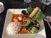 Sizzling ginger veggies with soft tofu, perfect. Eggplant perfect. Island treasures, mussels in coconut perfect. Highly recommend the food in this lovely easy ambience.