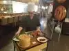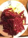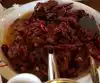 We had the cherry chicken,very spicy and crisp, and fragrant tripe cold appetizer,an aquired taste. Is pricy but recommended by native chinese as the only worth trying in the village.There is a bar but no ambiental music.Will return here.