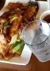 It was an upsetting experience visiting this reustarant. The elevator was spooky with a homemade sign that no more than 6 persons should use it at a time. We ordered our food and waited and waited without drinks for more than 30 minutes. The floor was dirty. The food arrived by parts including the fried rice 45 minutes later ( that's why there is no picture). At the end, my husband asked for a diet coke and the glass was stained by lipstick 😱. Never again.