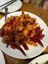 I was staying across the street in InterContinental and saw the very positive reviews on TripAdvisor and Yelp. I tried to order online for pickup but neither seamless nor grubhub were working for me. I was able to get a table for one, and had a very nice dinner. Complimentary (very) spicy cabbage appetizer was pretty intense, then went with the popular dry chili chicken and an order of dumplings. Both delicious. The dry chili chicken is made up of bits of fried spicy chicken, buried in a mound of chili pepper pods. Very pleasant server.