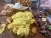 So glad I decided to give Lapisara a try. Service was excellent - from the warm welcome when I stepped into the restaurant to the solicitous care from multiple staff members, it was quite amazing given how busy they were on a Sunday morning. Space is small and a bit of a squeeze but no one seemed to mind because the food (and service) was generous and so good. And the vibe was just positive and conducive to conversation over a good meal. I tried the Holy Chili Bomb Basil Omelette, which was presented most prettily on a plate with dainty edible florals. It was essentially a spicy Thai Basil Ground Chicken (or Gai Pad Krapow) wrapped in an omelette. I had enough to make two meals. Great job Lapisara! If I'm in the area again, I will be a repeat customer.