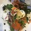 Waitress was very helpful in assisting me in choosing a dish to match my desired appetite. She recommended the salmon toast. It was a good recommendation. I ate the salmon toast outdoors and enjoyed the crispy sourdough bread, the plentiful lettuce and the pile high salmon. What a delight. I requested a side of olive oil to top it off.