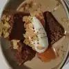 A group of my daughter's friends had 17th birthday breakfast here yesterday. Their group of 10 were seated in the alcove in the back which was perfect..their own space, but still part of the restaurant. We and the other couple sat at our own table in the main part. The best part of the restaurant is the ambience. Restored warehouse, high ceilings with reclaimed wood beams, big windows with lots of light even on this gloomy, wet day, punctuated by pendant lights dotting the ceiling. I had the Shashuksa ..kind of like a hash with two poached eggs. served in an individual cast iron pan. Well presented, but bland and mostly croutons and potatoes. Others had the omelette which was well liked, as well as the brisket. The girls gave rave reviews for the French toast and the avocado toast. Excellent (very strong), coffee, and friendly service. Not sure I would return for breakfast, but would try again for dinner.