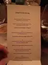 A 7 course prix fixe menu.Everything is prepared with a love and passion of food. The entire restaurant strives for excellence. Since the prix fixe does not allow choices it is not for the timid,but everything is recognizable and prepared with the best ingredients. The masterful Chef will happily work around any food allergies,it is helpful if this is made known in advance. Since this is a small space reservations should be made as close to 2 months in advance-a hassle but highly WORTH-IT!! It is a BYOB and highly deserving of your best bottles