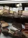 We stopped in for Saturday lunch and were amazed and disappointed. Amazed because they have gourmet (and pricey) sausages and pates and beef in the meat case. Want rib steak for $26.95/pound? You can get it here. Want 4 different kinds of pate? You can get it here. Want to have a sandwich - one of their daily specials - for lunch? Forget it. We each ordered the "Cold Corned Beef on baguette with spicy pickle relish, red onion, Swiss cheese, mayo, and Dijon" for $10.95. Lunch does not include table service; order at the cash register and pick up your sandwich when they call your name. Had to wait over _20 minutes_ for it to be made. The baguette was stale and so tough to bite that I had to gnaw off pieces with my back molars. The sandwich was sorta tasty, but I've had better at my local Safeway deli counter, and for $6.95 instead of $10.95. I can only think you're paying for the trendy, gentrified location, because the lunch certainly wasn't worth it.