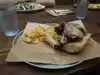 Split a pastrami sandwhich, which was enough for me. Taste was great. Service was good. Sat outside (most seats are for 2 but there is at least 1 table for four). Nice sitting outside in June. Price very fair by Portland standards.