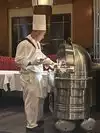 The Prime Rib was OK but too greasy. The pudding is far from being good. Found the hall kind of old fashioned, the silverware is not in line with the prices, not even a decent knife. There is no soul nor accountability for the performance of this place. Visited the restroom and smelled bad. This place is no longer worth visiting.