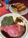Excellent prime rib dinner with very attentive service. Very old school supper club type atmosphere. Prime rib and sides comes table side on a large cart and is cut right there at the table. All of it was good, the prime rib, the creamed corn and the mashed potatoes. They also "spin" a salad at your table. Definitely recommend and come hungry, the portions are large!