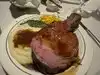Well the prime rib and the service lived up to its reputation, best prime rib we ever had. Pricy though a party of 6 of us came to 500$. The rib was melt in your mouth tender and flavorful, only negative was the out edge of the rib cut had a toughness to it like a thin tough membrane but the rest was delightful. The creamed corn and mash potatoes with gravy was shockingly delicious, not so much the bread though. We found vegetable sides a bit undercooked for our liking. The staff was very obliging and polite and treated everyone like royalty. If you can afford these prices this is a go to experience, the men in our group all had the largest cut and were very filled in the end, the women had the Larry cut and it was just perfect for them.