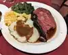 First time coming for lunch. But wont be the last. I had the turkey platter with enough food for lunch and dinner. Hubs got the Prime Rib so I got the best if both worlds. Turkey platter came with stuffing, mashed potatoes, creamed corn and gravy with a side of cranberry sauce. Cant wait to come again