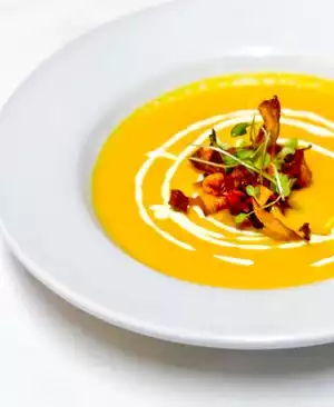 The restaurant was busy, but we decided to wait for a table. We required a light meal as we had eaten midday. We were soon seated,although the tables were very close together, it was impossible not to hear the conversations from either side.There was also a $20 minimum charge with each meal. We decided we would be more comfortable at the bar. We had the onion soup, and it was delicious.Followed by a shared portion of berry crumble, which was also good. The bar tender was lovely, and very friendly. We would certainly pop in again for another soup or more...