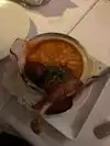 Salmon deviled eggs with caviar was great. Garden pea soup with fresh French bread was tasty. We sat at the bar and enjoyed the company of a local named Pete. He was once in love (and still loves her) and he was quite entertaining. Kristin the bartender was wonderful. Wine was reasonable (happy hour).