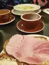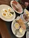 Terribly hard, stale bread sandwich. My husband and I couldn’t even cut through it. My teeth hurt from trying to eat it. Saw loaves sitting out when I visited the bathroom at the end. Service was almost nonexistent. No one came back to see if our meal was okay. I had to get up and ask for the check.