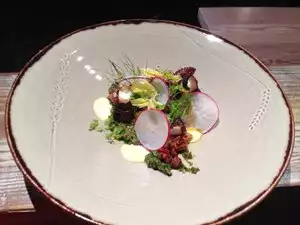 Had high expectations - but was disappointed. Ordered 3 items including 1 drink. Drink was alright but was taken away with no questions before I could finish it. The server just assumed I finished it after I made the payment - almost 1/4th of the expensive drink got wasted. The grilled octopus tasted alright but had charred portions - Clearly the grill wasn't cleaned good enough at least in this particular case and left a bad taste in my mouth - I should have completely cut those portions off. The third dish - a trout toast was good but nothing extra ordinary.