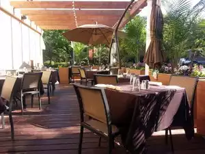 Good food and friendly service. The drinks were poured well. The prices are a little high for the amount of food you receive, but that's typical of a hotel restaurant. We like to sit and enjoy watching the people walking by.