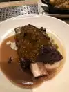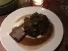 This is a plate sharing restaurant, everything was fabulous, for two people took 2 dishes from the left of the menu and 2 from the right, the scallops were great. Also had the side of beets which were not red, they were delicious! Visited brewery upstairs before our reservation, affiliated establishment, Belgium beer was great, sat upstairs for dinner, much brighter than downstairs, can't wait to go back!