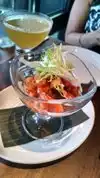 Had dinner tonight- cocktail menu is unique. Lots of good choices! For dinner we shared: had the Classico (shrimp and octopus drowning in a cocktail sauce), crab salad (great with a hint of spice!), cod (tasty, small portion) and scallops (fantastic). Served with warm tortillas which was a nice addition. Restaurant is located in a hip and happening area of town!
