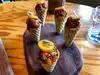 My husband and I stayed at Mandalay Bay and this became our go to happy hour/respite. Cool industrial vibe, great food and great service. We love small bites, allows us to explore the menu. The scotch eggs we fun and delish. The menu is eclectic and everything we had from food to cocktails was very good.