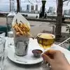 Of course the location is amazing. You could be on any coastal waterway viewing yachts around the world. But that's definitely not it. The service and food were top notch. From the delightful salad dressed with vinaigrette with imported from Burgundy mustard to the pasta dishes and perfection of their Apple tartin this truly is an oasis into the countryside of France more than it is a touristy part of Brookfield Place.
