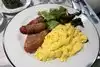 This restaurant is quite deceptive as it seems like a little bistro that flows into the bar. However, if you keep walking past the bar, you walk right into this beautiful dining room that overlooks the harbor. It is breathtaking! We were in a bit of a hurry because we had a plane to catch, but the server accommodated us without any problem. I ordered the French toast with a side of scrambled eggs. This French toast was so delicious! The portion size was huge! The eggs were cooked to perfection, but the serving was quite large, too. My husband and I could have easily split one dish. My husband ordered the eggs with sausage and bacon. He also enjoyed his dish, but the portion size was quite large. I love being surprised by large portions!
